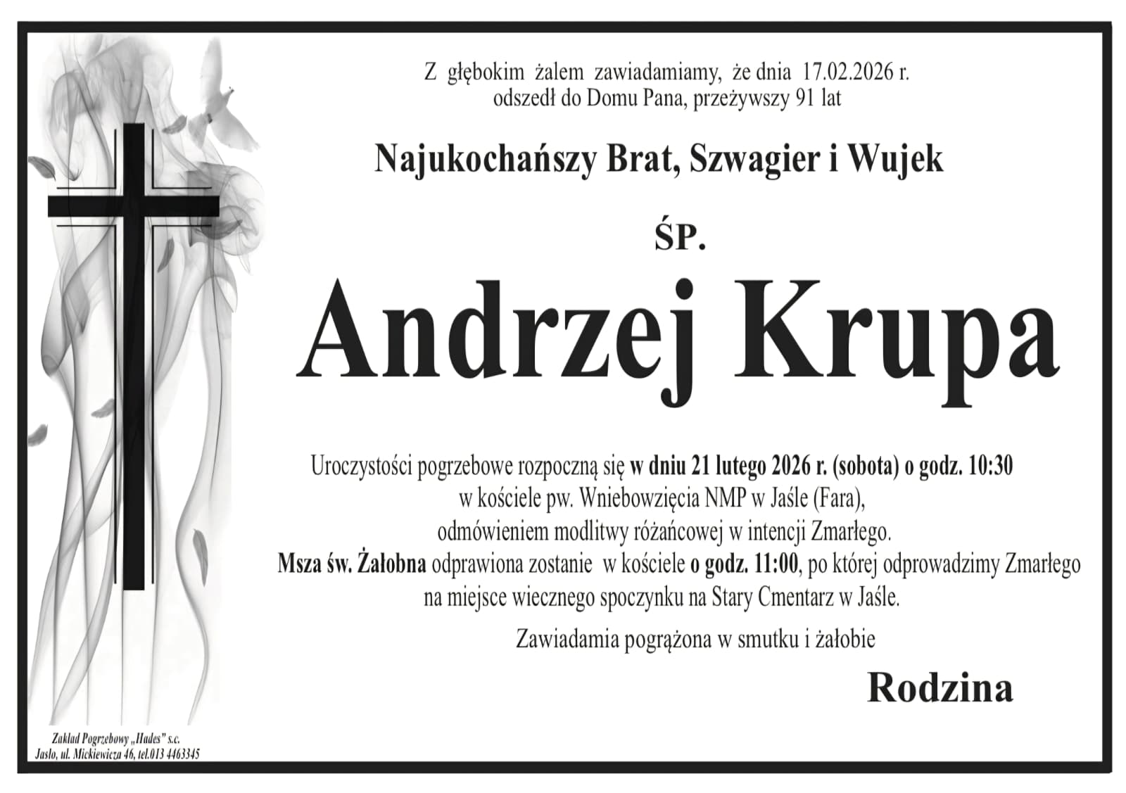 Odszedł śp. Andrzej Krupa (1934–2026)