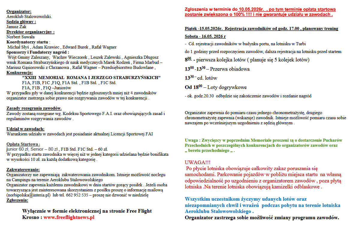 |Biuletyn| PP F1A,B,C,Q – XXIII Memoriał R. i J. Straburzyńskich 2026