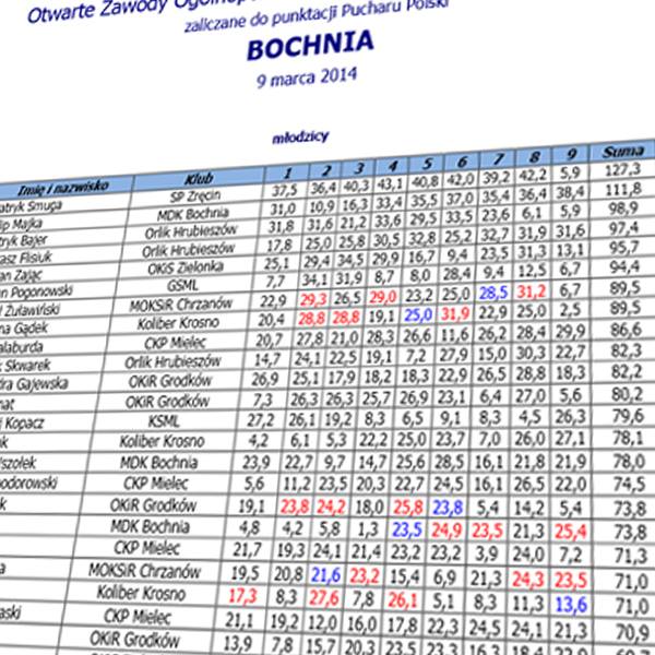 Komplet wyników ze wszystkich zawodów PP F1N 2013 i 2014